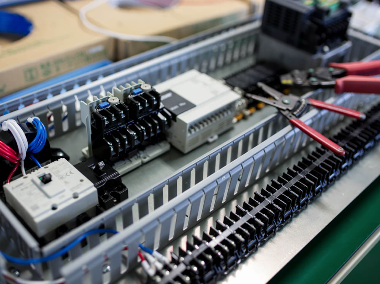 当社では制御盤をメインに、制御盤に組み込むユニットやケーブルなど、さまざまな装置の制作に対応しています。未経験の方は、はんだ付けなど社内でできる簡単な作業から始めていきましょう。細部まで丁寧に仕上げ、お客様に高品質な装置を提供します。 -